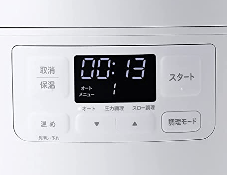 | 手動メニュー | 圧力調理/低温調理/スロー調理/温度調理・炊めモード/温めなおし |