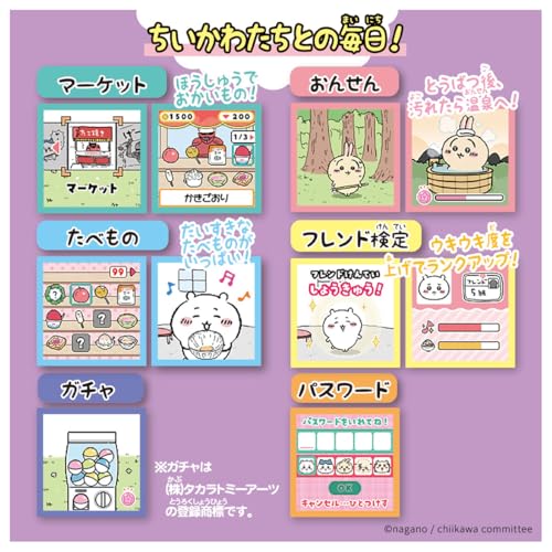 - ★★★☆☆ボタンが分かりにくい全体的にはよく出来た商品で、ちいかわが好きなら満足出来ると思います。ただ、ボタン操作に難があります。スマホっぽい3つのボタンですがそれぞれ決定、キャンセル、進むになっててどれがどれか直感的に分かりにくいです。また、液晶画面が非常に小さいため、ついつい画面に近付きがちになるため親として注意された方がよいと思います。