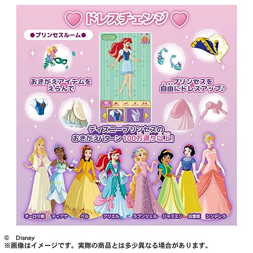 ●人気の8姫のおきがえ遊びが楽しめます。(ラプンツェル、アリエル、ベル、シンデレラ、オーロラ姫、ジャスミン、白雪姫、ティアナ)
