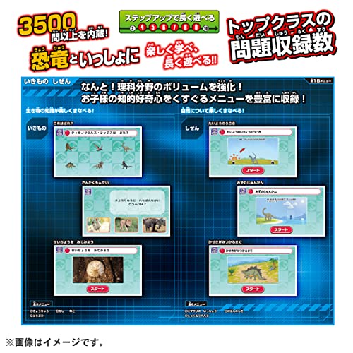 ■3500問以上とトップクラスの問題数を収録!「こくご」「さんすう」「えいご」「プログラミング」「パソコンスキル」等はもちろん、恐竜好きと親和性の高い「しぜん」「いきもの」の学習メニューのボリュームを強化!お子様の知的好奇心をくすぐるメニューを豊富に収録!
