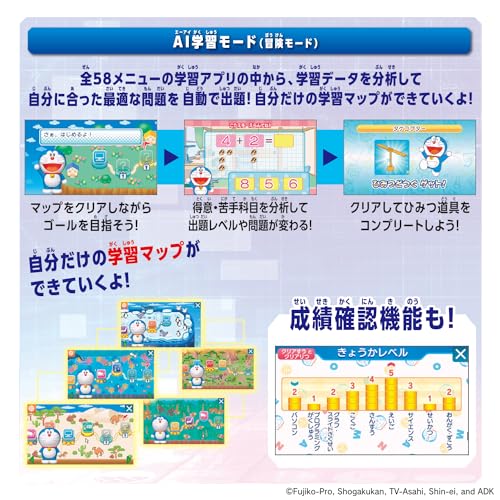 選択肢で選んだ好みなどをドラえもんが覚えてくれて、子供にあった会話をしてくれる。また、やる気アップにつながる成績確認なども。