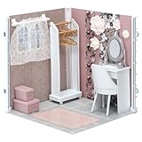 Francfrancとコラボした壁紙やラグ、カーテン、ドレッサーやチェア、ウォールフラワーや小物などでリアルなドレッサールームをコーディネートできます。床、壁シートは表裏でデザインが変わり、別売りのアイテムを組み合わせるとさらにインテリアコーディネートが広がります。